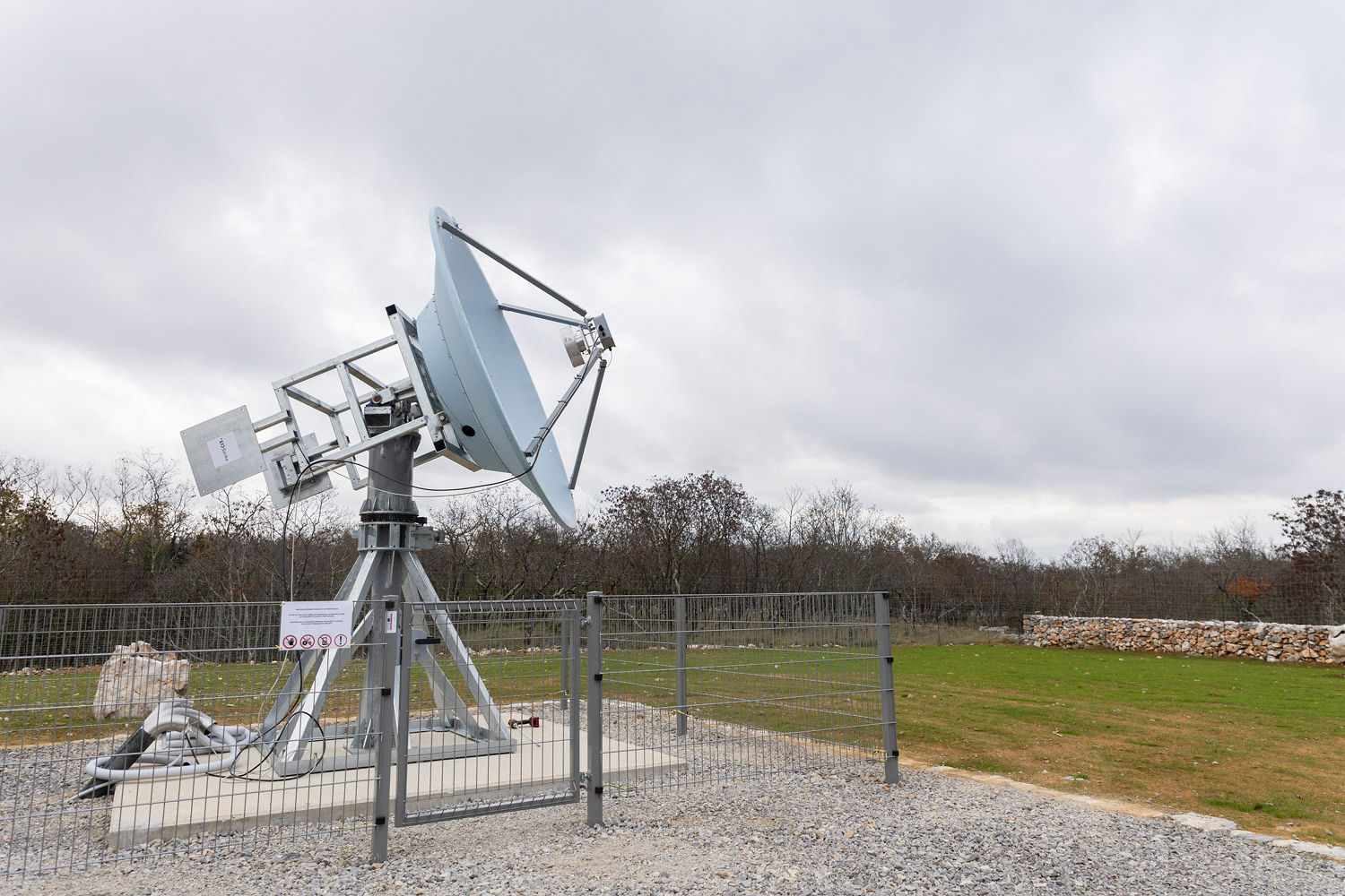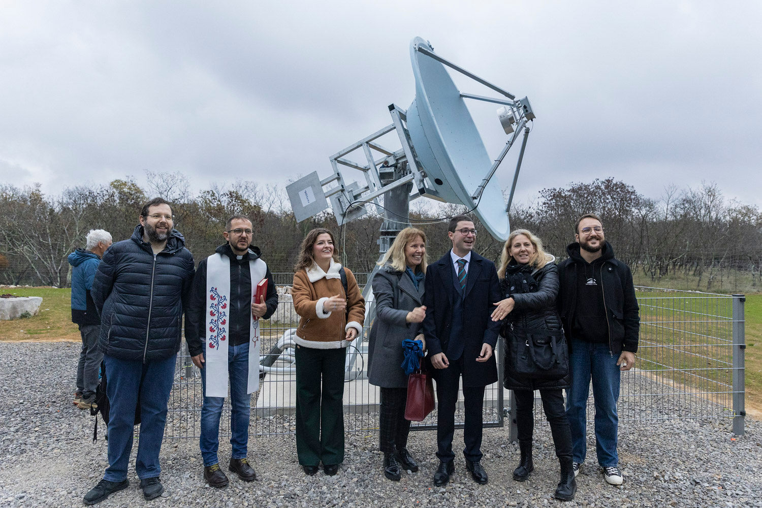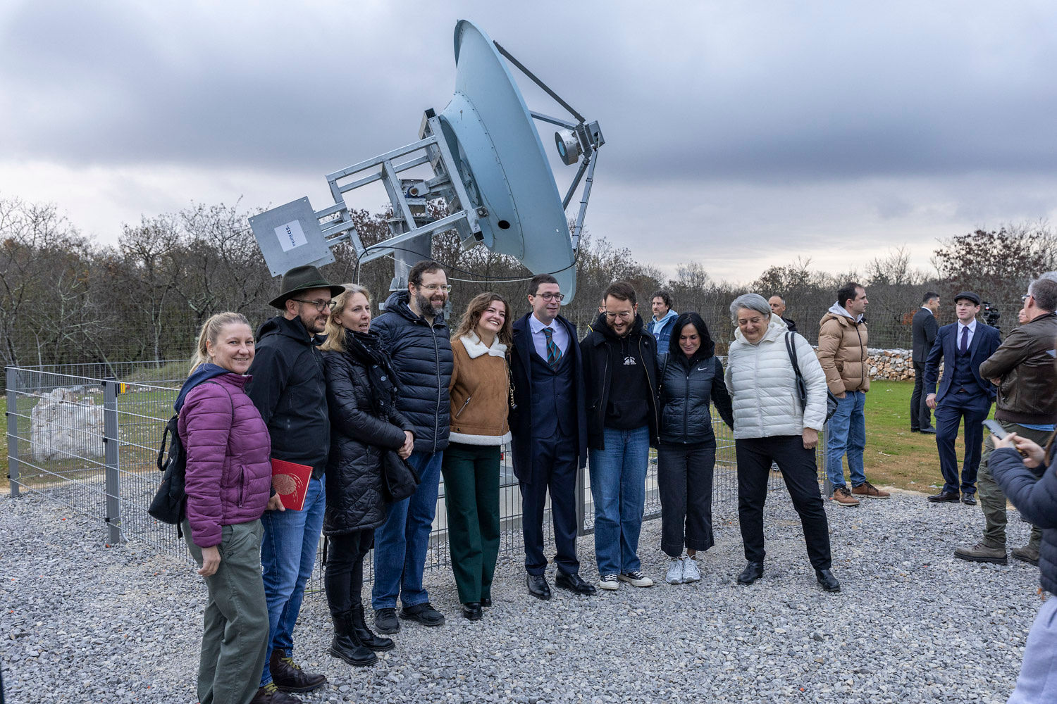 On November 15, 2025, we inaugurated a 2.4-meter radio telescope in Nova vas, in the municipality of Miren–Kostanjevica, dedicated to observing the emission of the OH molecule. The event began at 3 p.m., when we presented the telescope and its operation to the public. At 4 p.m., the opening ceremony of the Skupina za znanost in umetnost (Science and Arts Group) was held. The gathering continued late into the evening and attracted about 200 attendees.